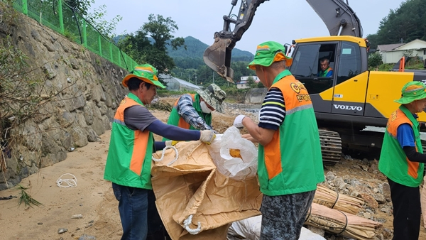 이에 지역자율방재단원 10여 명은 포크레인 1대를 동원하여, 쓸려내려온 토사와 쓰레기를 제거하고 유실구간에 톤마대를 쌓는 등 피해복구와 제10호 태풍 ‘하이선’으로 인한 2차 피해 방지를 위해 총력을 기울였다.