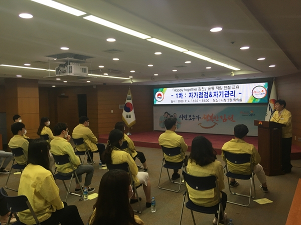 김천시(시장 김충섭)는 지난 9월 4일 김천시청 2층 회의실에서 20대 공무원 30명을 대상으로「Happy together 김천」직원 친절 교육을 실시했다.