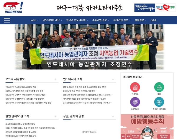 대구·경북 자카르타사무소(이하 사무소)에서는 지역 중소기업의 인도네시아 수출시장 개척과 투자에 필요한 정보를 제공하기 위한 홈페이지 구축작업을 완료하고 지난 9월 7일부터 본격 운영에 들어갔다.