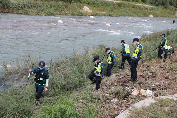 8일 오전 9시부터 시작된 수색작업은 실종자 발생지점 부터 기양저수지 14km 구간은 인력, 왕피천 하구에서 죽변 앞바다까지는 선박, 기양저수지 일대는 드론으로 진행된다.