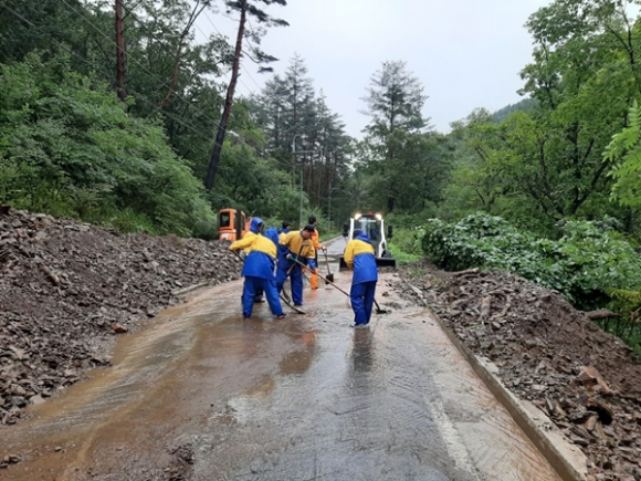 이에 군은 읍면사무소 분담직원을 피해현장에 투입하고, 응급복구 장비를 지원하는 등 신속한 피해복구에 박차를 가하고 있으며, 현재 도로침수로 인한 교통통제 구역 8개소 중 5개소는 복구작업을 완료하여 현재 개통된 상태이다.