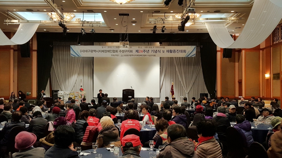 대구광역시지체장애인협회 수성구지회(회장 사공한)는 지난 26일 그랜드호텔에서 창립 24주년 기념식 및 재활증진대회를 성황리에 개최했다.