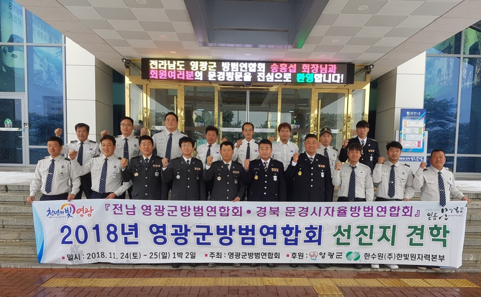 전라남도 영광군 방범연합회(회장 송홍섭) 회원 40여 명은 지난 11월 24일, 25일 양일간 문경시자율방범연합회(회장 도명흠)을 방문해 돈독한 정을 함께 나누며 화합의 시간을 가졌다.