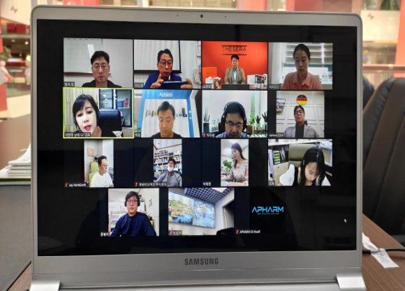 이날 영상회의에 대구지역에서는 김효원 대구뷰티수출협의회 회장(엠알이노베이션 대표) 등 8개 회원사 대표가, 중국 현지에서는 이현명 상해 희이(姬洱)무역유한공사 대표가 참석했다. 지원기관에서는 조동훈 대구TP 한방산업지원센터 센터장 등 15명이 참가했다.