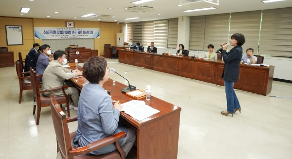 수성구의회(의장 조용성) 소속 의원연구단체 ‘수성구정 혁신과 개선을 위한 연구모임(회장 황혜진 의원)’은 지난 10일 수성구의회 2층 회의실에서 위탁조례 교육 및 제도개선 연구용역 착수보고회를 개최했다.