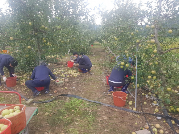 비가 오는 궂은 날씨에도 불구하고 농림축산해양국 직원 100여 명은 복구가 시급한 사과, 배 재배 농가 현장을 찾아 낙과 수거작업, 쓰러진 나무 세우기 등 작업을 실시하며 피해를 입은 농민의 아픔을 위로했다.