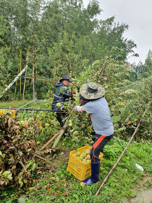 이번 제10호 태풍 하이선은 매우 강한 비바람으로 이달 추석맞이 출하를 앞두고 있던 사과와 배 재배 농가에 상당한 피해를 입혔다. 지난 4월에는 이상기후로 인한 저온 피해를 한 차례 입은 터라 농민들의 걱정이 컸다.