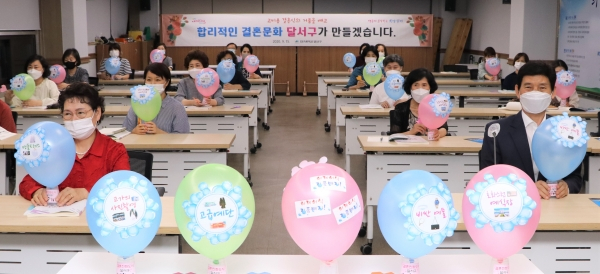 대구 달서구(구청장 이태훈)는 9월 15일 저녁 7시 구청 회의실에서 합리적인 결혼문화 정착을 위해 주민 30명을 대상으로 ‘제5기 웨딩플래너 양성과정’을 개강했다.