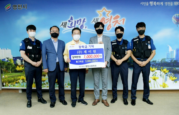 대구경북지역에서 무인경비, 출입통제, 근태관리 등 보안시스템 서비스를 제공하는 보안시스템 선두주자 ㈜제이원(대표이사 조용숙)이 지난 9월 17일 (재)영천시장학회(이사장 최기문)에 장학기금 100만원을 기탁했다.