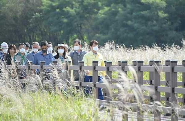 권영진 대구시장은 지난 9월 18일 오후2시 코로나19로 임시휴관 후 22일 운영 재개를 앞둔 달성습지 생태학습관과 대명유수지 맹꽁이학습장, 현재 조성공사가 진행 중인 야외 생태학습장 현장을 방문했다.