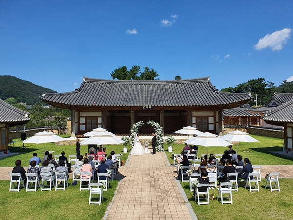 성주군은 올해부터 성주에서 새출발을 하는 예비부부를 대상으로 작은 결혼식을 지원하며 지난 9월 20일 첫 결혼식이 고려말 삼은의 하나로 널리 알려진 도은 이숭인 선생 기념관이 있는 성주역사충절공원(청휘당)에서 열렸다.