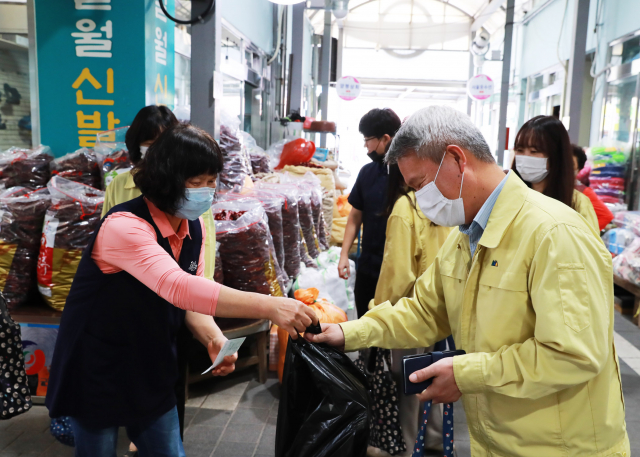 영양군(군수 오도창)은 민족대명절 한가위를 맞아 코로나19로 침체된 시장경제 회복을 위해 전통시장 특별방역과 함께 코로나19 예방수칙과 사회적거리두기를 준수하는 ‘코로나19 안심’전통시장 장보기를 추진한다.