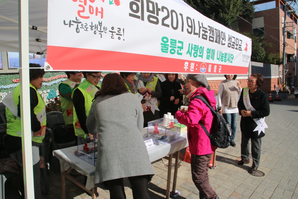 정외숙 울릉군 사랑의열매 나눔봉사단 단장을 비롯한 단원 등 40여 명이 도동 · 저동지역 일원에서 군민들을 대상으로 성금 모금에 동참을 홍보하고, 지역 주민에게 홍보물품을 배부하는 등 성금모금 활동을 전개했다. 특히, 울릉군은 이날 캠페인에 앞서 울릉군 사랑의 열매 나눔 봉사단과 간담회를 개최하여 그 간의 활동 경험을 공유하고 나눔 캠페인을 보다 체계적으로 확산시키기 위한 방안에 대하여 의견을 듣는 자리도 마련했다.