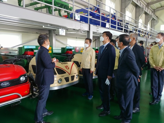 | ↑↑ 최기문 영천시장이 지난 4.28일 동부지역 농기계임대사업소 준공식에 참석해 현장을 둘러보고 있는 사진 |