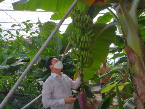 성주에서 처음 재배된 바나나는 지난해 12월 안동에서 어린묘목을 수령하여 재배한 이래 9월 초 꽃을 피우고 열매를 맺기 시작하여 11월 초순 90㎏을 수확할 예정이다.