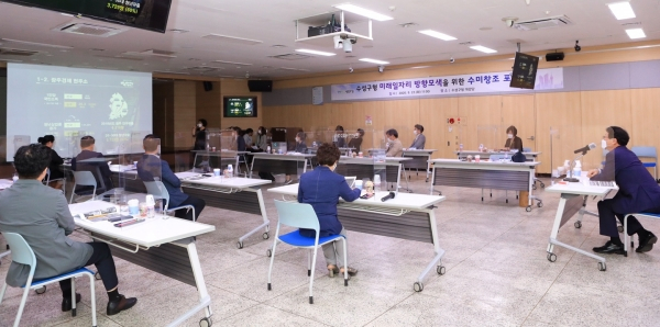 | ↑↑ 수성구청 대강당에서 수성구형 미래일자리 방향모색을 위한 수미창조 포럼을 진행하고 있다. |