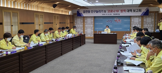영천시(시장 최기문)는 지난 9월 23일 시청 영상회의실에서 김호섭 부시장을 주재로 국,소장 및 읍면동장 등 25여명이 참석한 가운데 인구 늘리기 대책과 안전한 추석연휴를 보낼 수 있는 ‘코로나19’ 방역 대책 보고회를 개최했다.