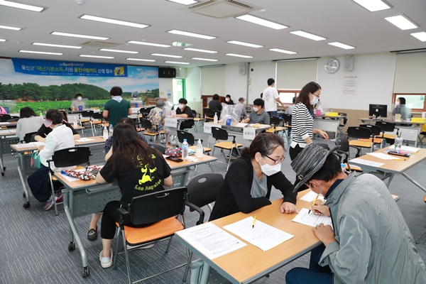울진군(군수 전찬걸)은 지난 9월 14일부터 코로나19의 장기화로 어려움을 겪고 있는 군민들의 생활안정과 지역경제 활성화를 위해 군민 1인당 10만원씩 지급하는 울진군 재난기본소득을 지원하고 있다.