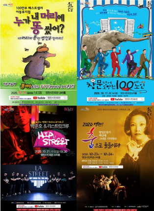 영천시(시장 최기문)는 10월부터 시민회관에서 2020년도 국비 공모사업에 선정된 ‘방방곡곡 문화공감 사업’과 ‘문화가 있는 날 지원사업’을 무관중 온라인 생중계 공연으로 진행할 예정이다.