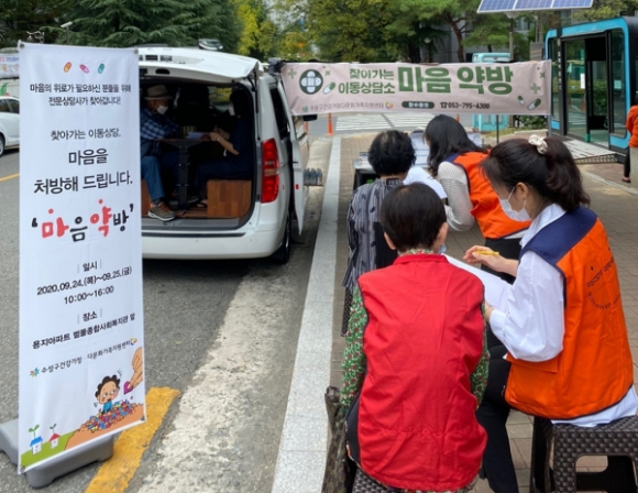 대구 수성구 건강가정‧다문화가족지원센터는 24일부터 25일 양일간 용지아파트(범물종합사회복지관 앞)에서 심리안정을 돕기 위해 찾아가는 이동 상담 ‘마음약방’을 운영한다고 밝혔다.