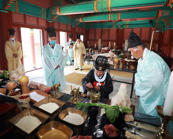 이날 석전대제의 봉행은 초헌관이 분향하고 폐백을 올리는 전폐례를 시작으로 초헌관·아헌관·종헌관이 차례로 공자 등 오성(五聖)에게 술을 따르는 전작, 분헌관이 오성을 제외한 성현들에게 술을 올리는 분헌례에 이어 음복례, 망료례 순으로 진행되었다.