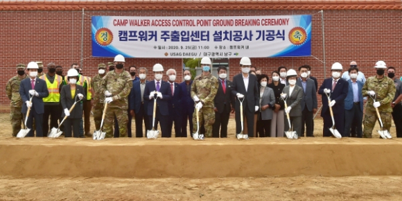 대구광역시 남구청(구청장 조재구)은 25일(금) 오전 11시 조재구 남구청장, 곽상도 국회의원, 블랑코 대구기지사령관 등이 참석한 가운데 봉덕동 캠프워커 기지 내에서 동편 도로 주출입센터 신설공사의 기공식 행사를 가졌다고 밝혔다.
