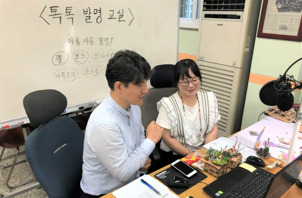 | ↑↑ ‘학부모와 함께하는 호기심 톡톡 창의발명 교실’을 실시간 온라인 수업으로 진행했다. |