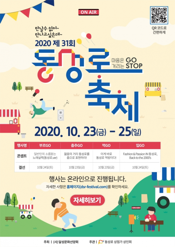 대구 대표 축제인 ‘동성로 축제’가 올해는 코로나19로 인해 10월 23일부터 25일까지 언택트 온라인 축제로 개최된다.