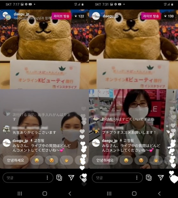 지난 22일 진행된 제2회 온라인 여행은 ‘온라인 수성구 K-beauty 여행’으로 대구관광홍보사무소 및 카쿠 사오리(k뷰티전문라이터, 메디컬수성서포터즈) 씨와 함께 K-beauty 관련 화장품, 대구대표 뷰티관광지, 피부과 전문의에게 듣는 가을철 피부관리 등을 소개했다.