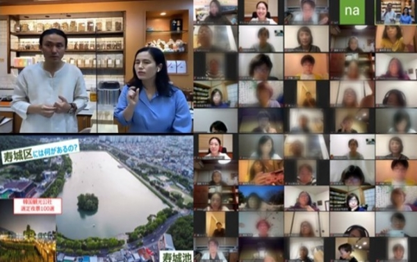 대구 수성구(구청장 김대권)는 지난 25일 제3회 수성구 온라인 웰니스여행 ‘몸과 마음을 힐링하는 온라인 한방차 테라피 여행’을 개최해 일본 현지의 한방차 테라피 체험을 실시간으로 생생하게 전달했다.