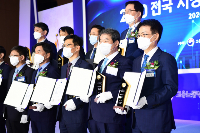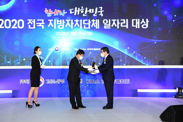 김천시(시장 김충섭)의 시정방침 최우선 과제인 ‘일자리가 풍부한 경제도시’ 김천건설을 위한 그간의 노력이 전국에서 인정을 받았다. 김천시는 지난 9월 29일 정부세종컨벤션센터에서 열린 고용노동부 주관 ‘2020년 전국 지방자치단체 일자리 대상’에서 지역일자리 목표공시제 부문 최우수상을 수상하여 기관표창과 함께 인센티브 1억 원을 받았다.
