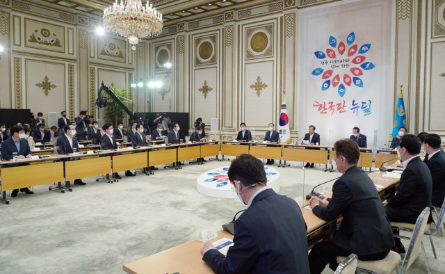 이날 회의는 대통령을 비롯한 청와대 비서·정책실장 및 관계 수석과 경제부총리 등 관계부처 장관, 그리고 더불어민주당 관계자는 물론, 17개 시도지사가 함께 참석해 한국판뉴딜의 추진방향을 모색하는 자리로 마련되었으며, 경제부총리의 ‘지역과 함께하는 지역균형뉴딜 추진방안’발표에 이어, 시도 사례 발표, 토론 순으로 진행되었다.