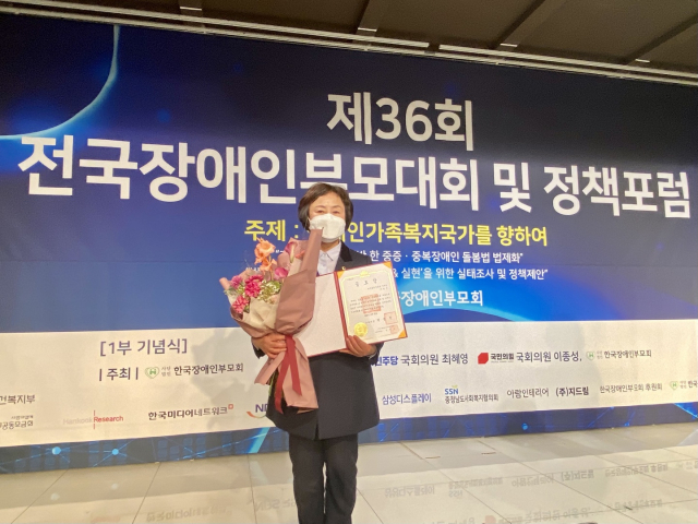 이영애 의원은 전반기 대구시의회 문화복지위원회 위원장으로 활동을 하며 장애인과 그 가족들의 복지향상과 인식 개선에 앞장서온 공적을 인정받아 수상의 영광을 안았다.