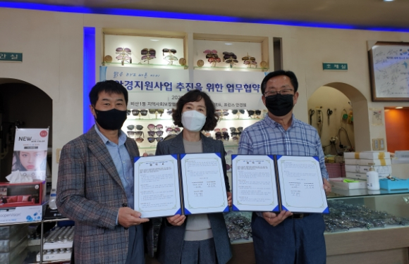 | ↑↑ 비산1동 지역사회보장협의체는 ‘밝은 EYE 바른아이’ 안경지원사업을 위해 업무협약(MOU)을 체결했다. |