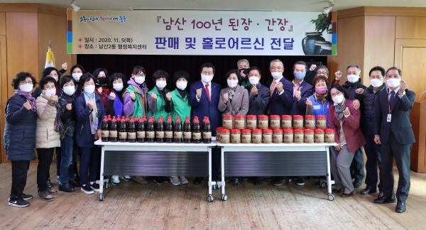 대구시 중구 남산2동(동장 김원태) 협의단체 회원들은 지난 5일 남산2동행정복지센터에서 관내 저소득 홀로어르신을 위한 ‘남산100년 된장·간장 판매 및 무료전달식’ 행사를 가졌다.
