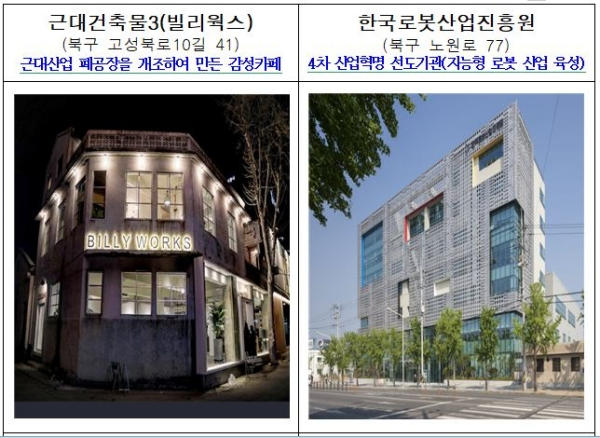 이어 노원동에 위치한 대한민국 로봇산업클러스터의 기반구축인 한국로봇산업진흥원을 거쳐, 국내 최고의 국수회사인 풍국면과 안경산업의요람인 안경박물관을 잇는 코스로 근대산업거리를조성했다.