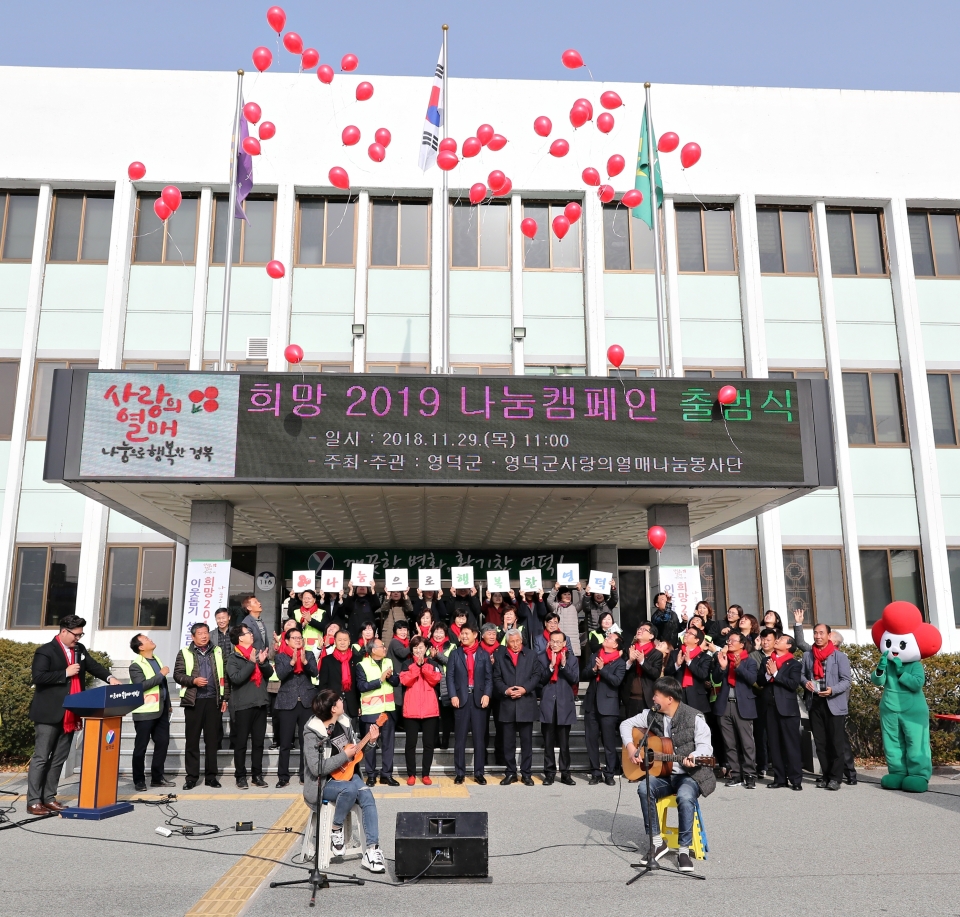 영덕군은 29일 군청 앞마당에서 ‘사랑의 열매 20년, 나눔으로 행복한 세상’이라는 슬로건을 걸고 ‘희망 2019 나눔 캠페인’ 출범식을 개최했다.