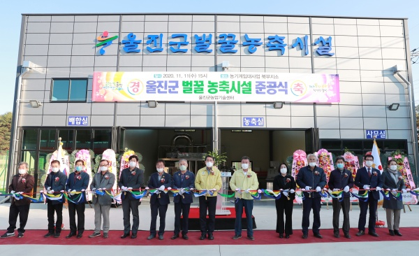 울진군(군수 전찬걸)에서는 지난 11일 농업인의 날을 맞이하여 북면 소곡리 에서 관내기관단체장, 양봉 농업인 등 100여 명이 참석한 가운데 벌꿀 고품질 농축시설 준공식을 가졌다.