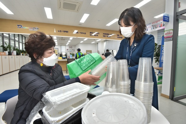 이에 남구청은 비대면(언택트. untact)으로 발생하는 문제에 대하여 능동적으로 대응하고자 배달용기 및 1회용 플라스틱 컵에 대한 보상교환사업을 지난 10월부터 올해 연말까지 한시적으로 운영하고 있다.