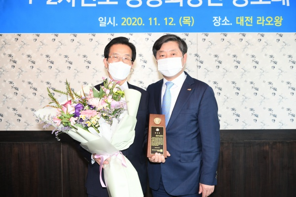 | ↑↑ 고윤환 문경시장, 전국시장군수구청장협의회로부터 공로패를 받았다. |