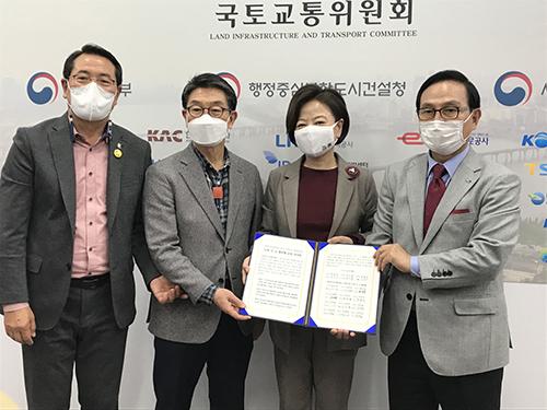 | ↑↑ 왼쪽부터 전찬걸 울진군수, 장욱현 영주시장, 진선미 국토교통위원장, 박상돈 천안시장 |