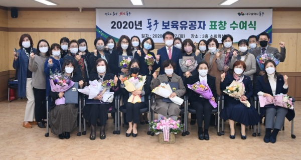 대구광역시 동구청(구청장 배기철)은 지난 17일 관내 어린이집 원장, 보육교사 중 평소 보육발전에 남다른 유공을 세운 보육종사자 13명을 선정하여 동구청장상을 수여하였다.