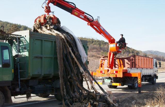 반사필름 또한 경작자가 끈으로 묶어 마을 공동집하장으로 배출하면 군청 또는 읍·면사무소에서 일괄 수거하여 농촌폐기물처리장으로 운반 및 임시보관 후 폐기물처리업체로 위탁처리 한다.