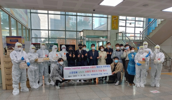 대구 북구 복현중학교(교장 이창걸)는 11월 24일(화) 북구보건소(소장 이영숙)를 방문하여 사랑의 케이크를 전달했다.