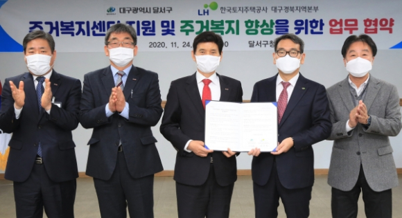 대구 달서구(구청장 이태훈)는 11월 24일 구청 4층 회의실에서 LH 대구경북지역본부와 주거복지센터 지원 및 주거복지 향상을 위해 업무 협약을 체결했다고 밝혔다.