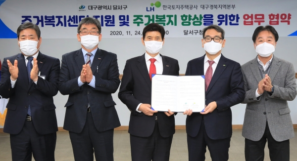 LH 대구경북지역본부에서는 이번 업무협약을 통하여 내년도 월성주공아파트 상가건물을 달서주거복지센터로 사용할 수 있도록 사무공간을 무상으로 제공할 예정이다.