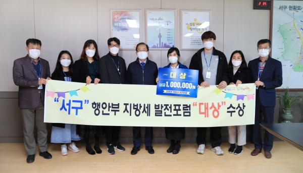 류한국 서구청장은 “이번 수상은 지방세원 발굴 및 세수기반 확대방안을 위해 끊음 없이 연구하는 자세로 노력을 기울인 결과”라며 “앞으로도 조세 환경변화에 능동적으로 대처하여 세입확대 및 안정적인 세정운영을 위해 제도개선 연구에 최선을 다하겠다.”고 말했다.