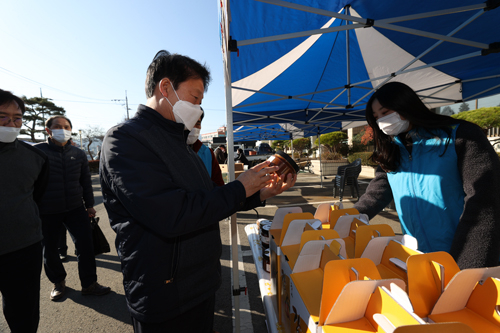| ↑↑ 25일 성주군 성주읍 지역사회보장협의체에서 2020 사랑나눔 장터를 열었다. 사진은 장터를 방문한 이병환 성주군수 |