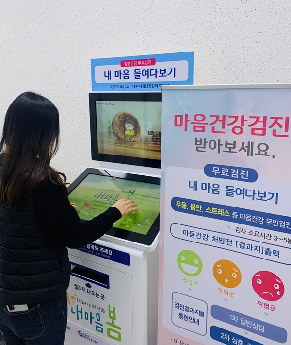 검사 결과는 상주시정신건강복지센터로 실시간 전송되며 주의군, 고위험군으로 나온 대상자는 동의를 거쳐 심층 검사 및 상담이 진행되고 지속적인 사례관리가 이뤄진다.