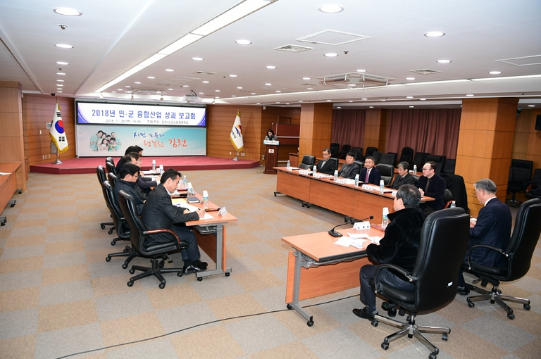 김천시(시장 김충섭)는 지난 29일 김천시청 회의실에서 지역내 군수기업체 대표 및 자문협의회 위원 등 20여 명이 참석한 가운데 '2018년 민·군 융복합산업 육성을 위한 성과보고회'를 개최했다고 밝혔다.